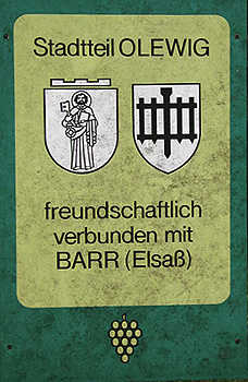 Seit 1963 pflegen die Olewiger eine Partnerschaft mit der französischen Gemeinde Barr im Elsaß. Gegründet wurde sie - natürlich - als Freundschaft der Winzer beider Orte, inzwischen beteiligen sich aber auch die Ortsvereine und die Freiwillige Feuerwehr lebhaft an diesem Austausch.