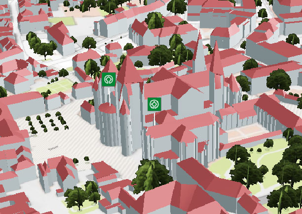 Für Trier wurden über 100.000 Gebäude mit ihren Dachformen automatisiert erfasst, teils mit Luftbildern verschnitten und mit einem 3D-Baumkataster hinterlegt. Mit diesen Daten wurde das Geoportal Trier um die dritte Dimension erweitert. Es existieren zwei Varianten: